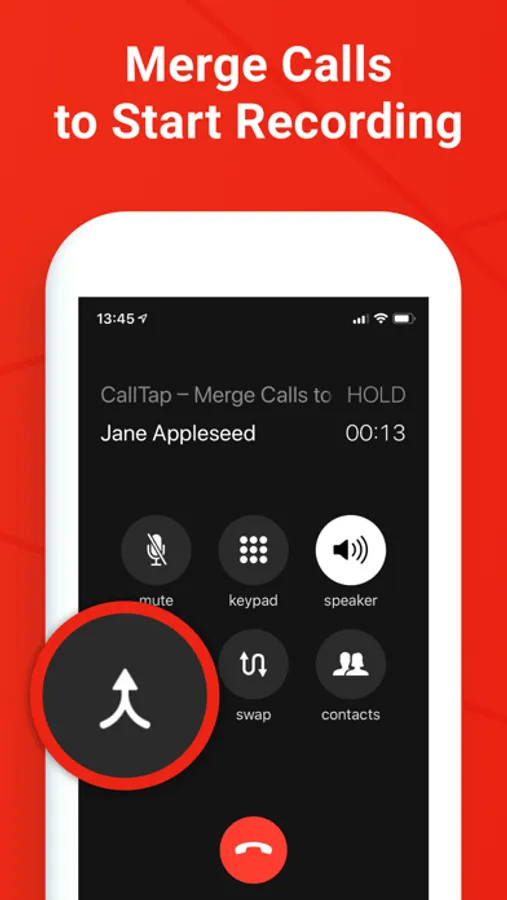 When you're on a call and you want to record it, open CallTap and press the record button. We will put your call on hold and dial our recording line. As soon as our line answers tap the merge button on your screen to create a 3-way call between your other caller and our recording line.