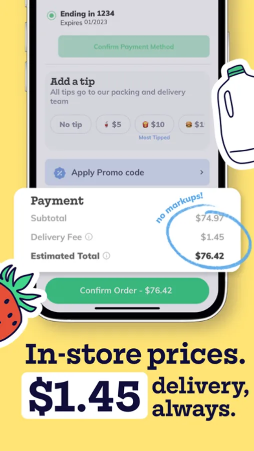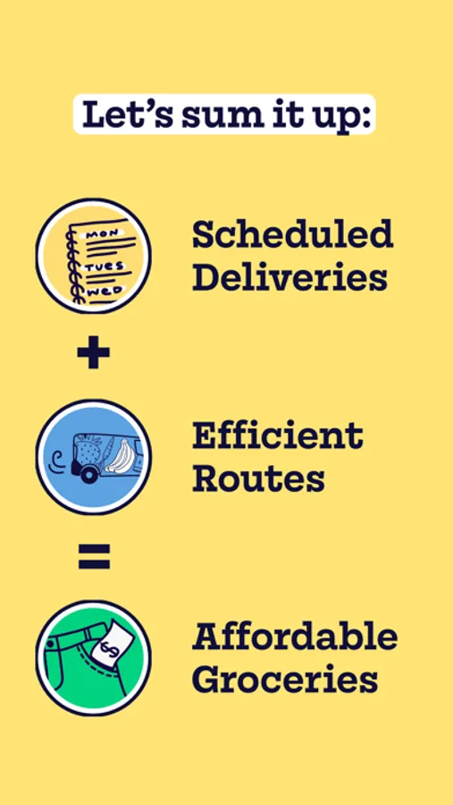 We’re able to offer a delivery fee of only $1.45 with no product markups or memberships by working with merchants to create a weekly delivery schedule. Within this schedule, we are able to aggregate orders onto one truck, reducing the cost of delivery substantially.