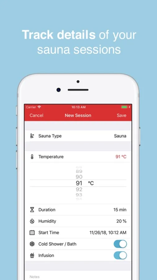 HotLog is your digital companion to tracking your sauna, steam bath, and infrared sessions. HotLog allows you to easily capture all the important details of your sessions like: