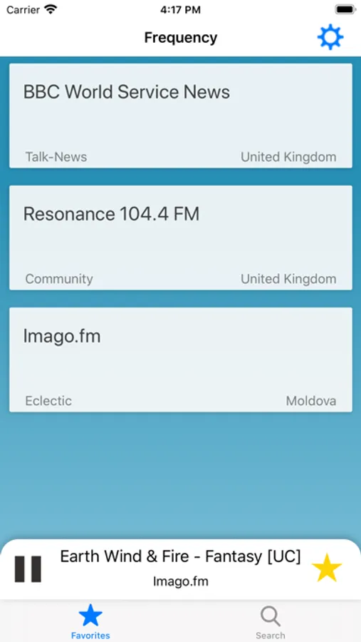 Frequency allows you to listen to streaming radio from around the world. Search by genre, location, artist, language or whatever keyword you desire. With over 30,000 stations to choose from, Frequency is sure to cover all tastes and interests. Once you've found a station you like, save it as a favorite for easy access.