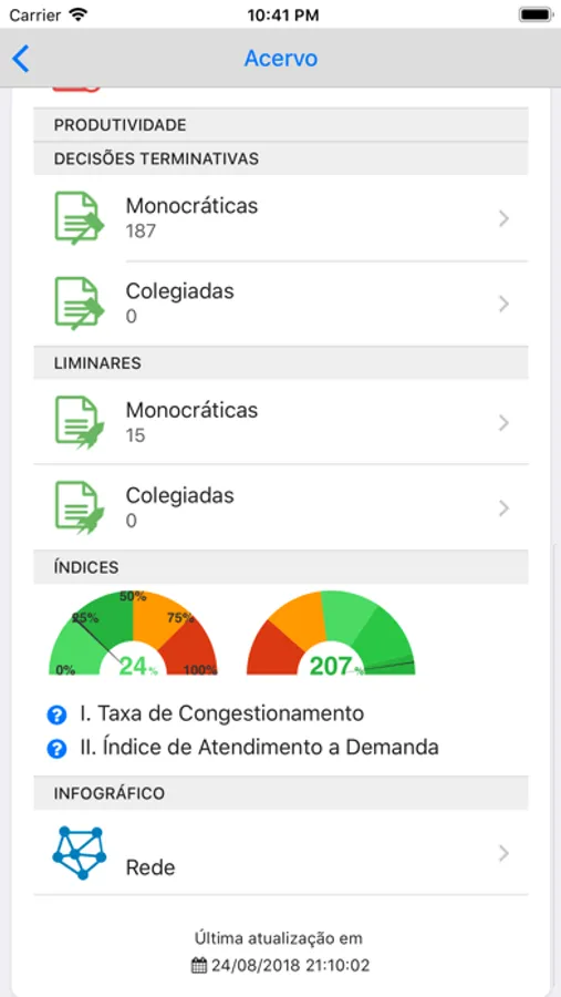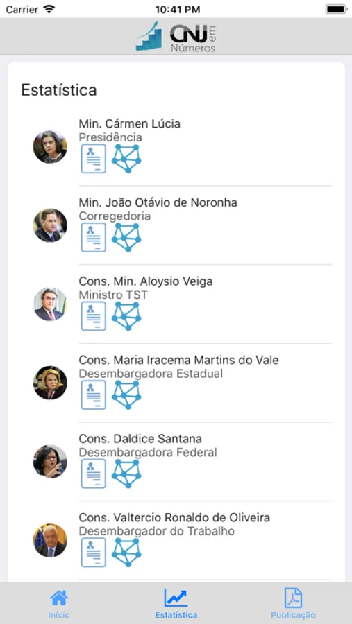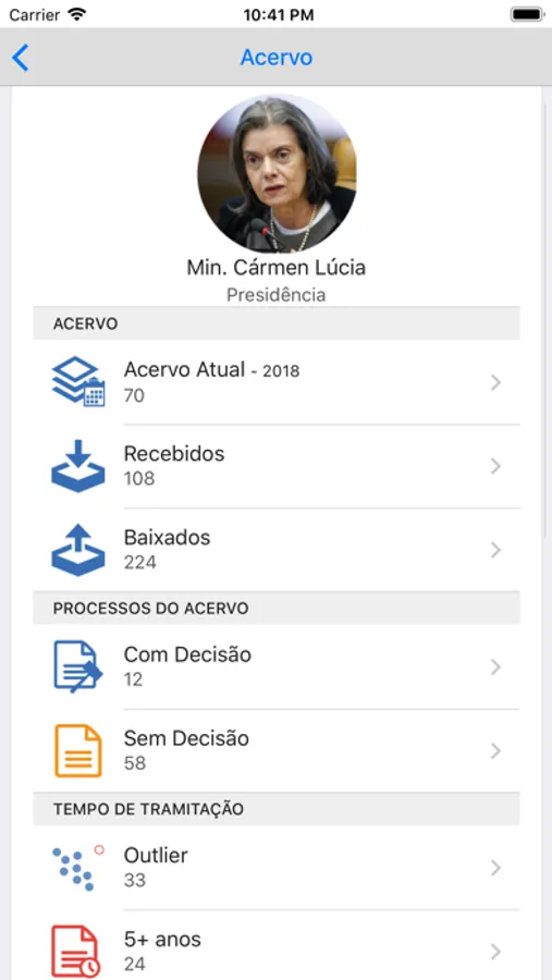 O aplicativo CNJ em Números apresenta, de forma simples e intuitiva a movimentação processual do CNJ, de acordo com o fluxo processual de cada um de seus Conselheiros, com detalhamento de cada processo, de acordo com a relatoria, atualizado diariamente.