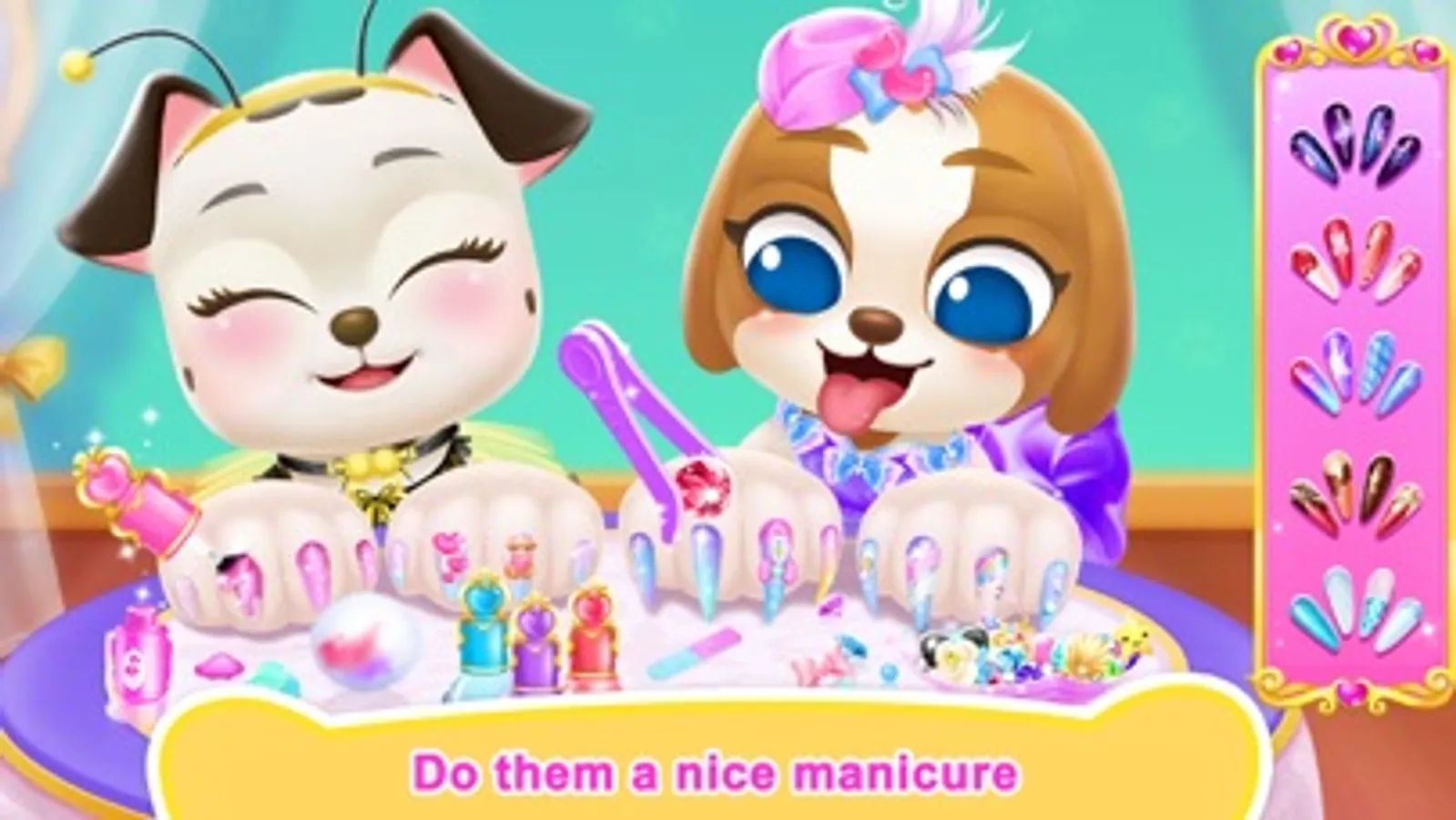 Libby, the royal princess, has set up her first salon in the royal palace, and all the furry balls are welcomed. On the first day of business, this fantastic place is totally crowded. Making up, dressing up, doing nails, these little cuties want a lot more. It's getting too busy to attend. Sweeties, Libby needs you and all the puppies need you too!