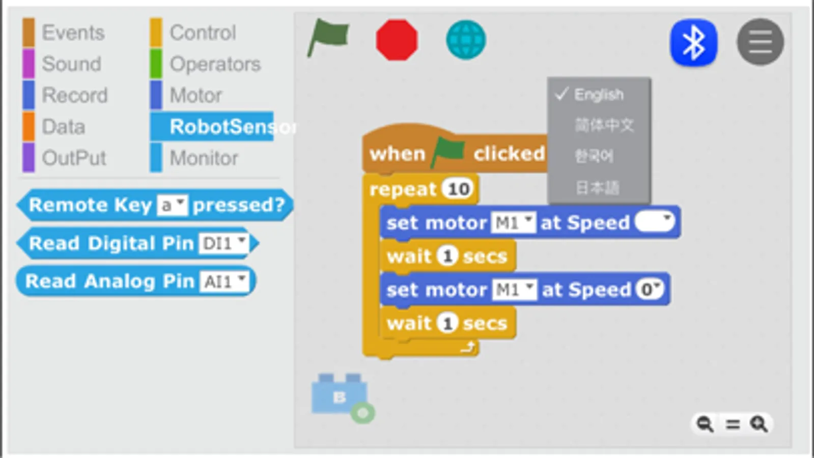 基于开源软件 Scratch 2.0 开发的图形化编程软件,支持乐宝科技旗下机器人编程控制,从而让用户可以轻易创造出可交互的智能应用。