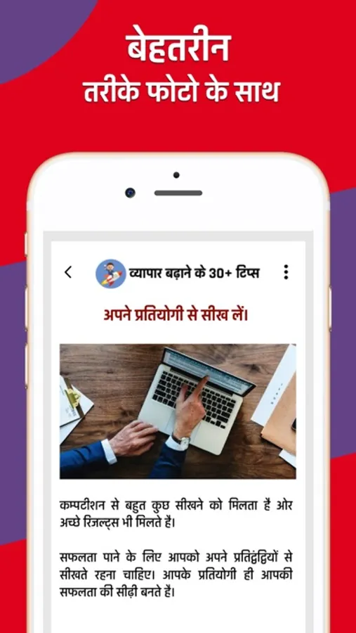 इस एप्प में आपके बिज़नेस को बढ़ाने और अधिक मुनाफा कमाने के कुछ बेहतरीन तरीकों को बताया है। जो आपके बिजनेस को बढ़ाने में सहायक होंगे।