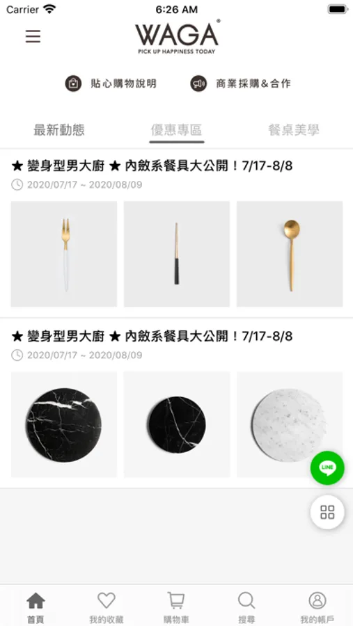WAGA 找最美餐具 APP 擁有獨家「一指滑圖」商品瀏覽功能,讓妳不用點開詳細商品頁就可快速篩選喜愛的商品,用指尖輕輕「點擊愛心」便可收藏所有興趣項目,看到喜歡的商品不妨先通通放入購物車、最後再一次做搭配與選擇,瀏覽過的商品也會貼心地幫妳記錄下來!
