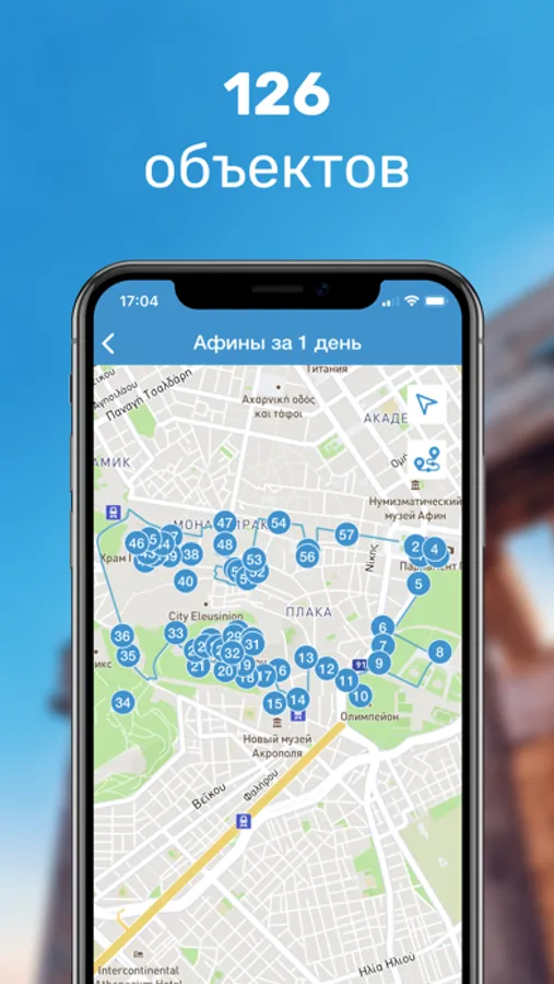 Чтобы легко ориентироваться в Афинах, все объекты экскурсий нанесены на карту, доступную без интернета (оффлайн), и пронумерованы в последовательности, в которой их лучше изучать.