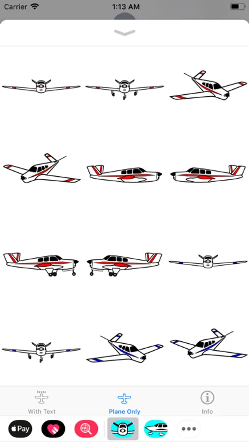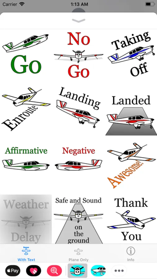 The sticker pack also includes stickers with just the plane and no text for those times when sending an airplane says it all.