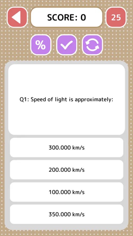 Physics Quiz is a game allowing you to re-learn your Physics. With many different questions which are divided into several levels, you can gain a lot of knowledge about this field. Besides that, Attack Mode and Normal Mode will challenge you. You can play in your free time, it helps you never lose your knowledge. Now let's get started with Physics Quiz