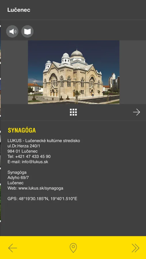 This application will guide you in three languages around the city Lučenec and Novohrad region. Get to know rich history and atmosphere of city Lučenec which lies right in the hearth of Novohrad region. Among many interesting buildings you can find the largest synagogue in Slovakia build according to the project of Leopold Baumhorn - "architect of beautiful synagogues in Kingdom of Hungary"