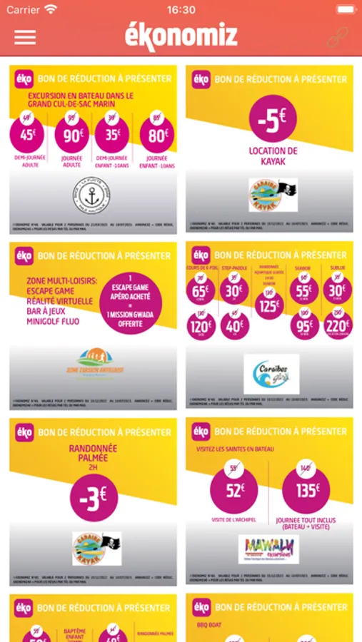 Le Guide des Loisirs EKONOMIZ propose 41 coupons réductions sur mobile.