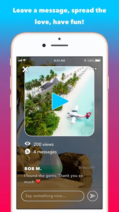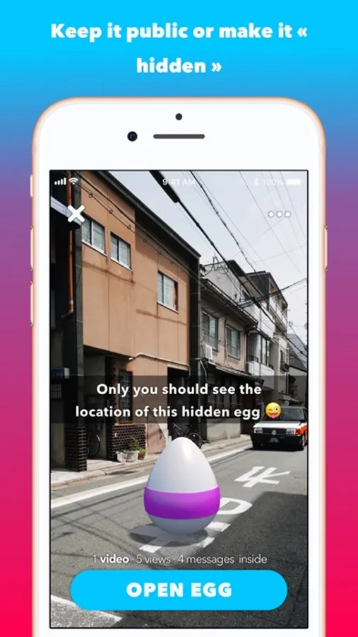 Heya lets you place eggs in AR and leave a secret inside. In a similar fashion to an Easter egg hunt, users go to different locations to find these eggs and to reveal their secrets.