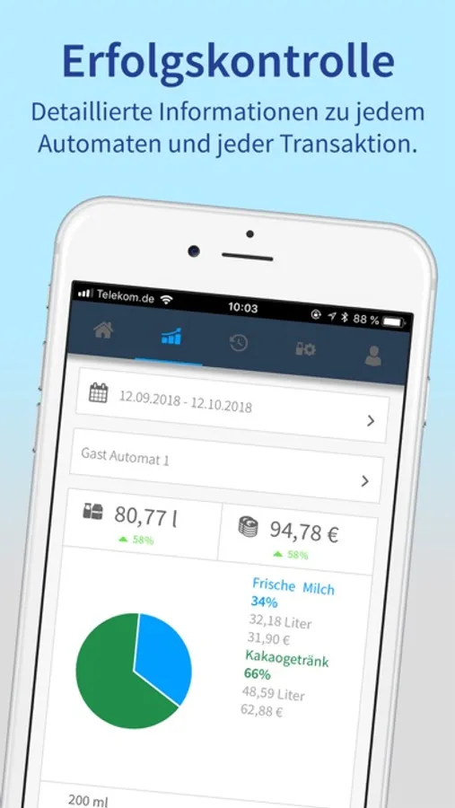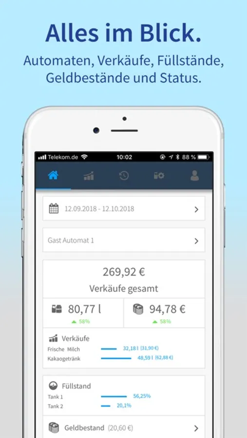 • Schneller Überblick über Verkäufe in Euro und Liter