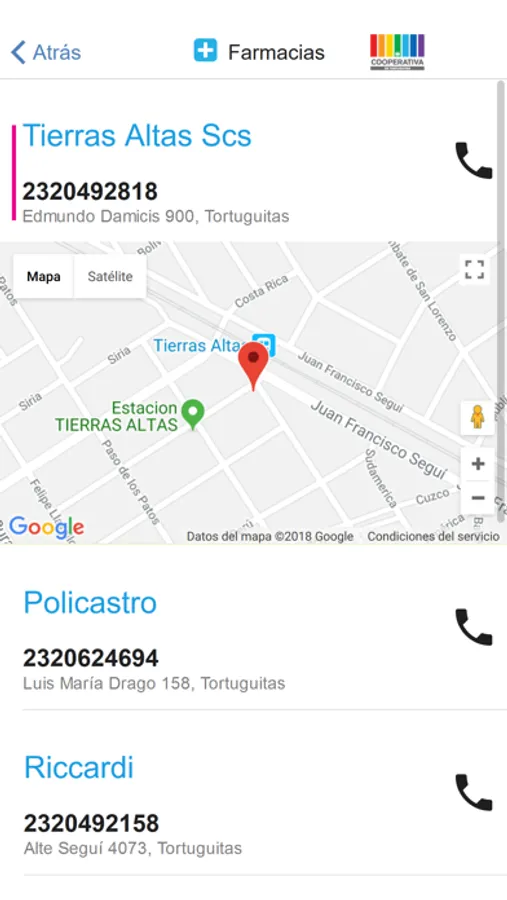 Consultar y ubicar geográficamente las Farmacias de la zona.