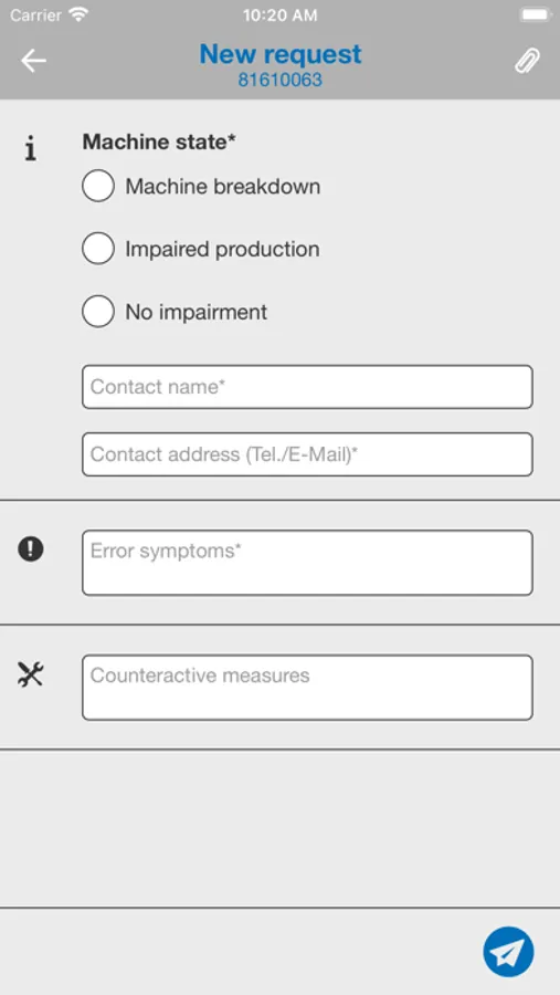 With myConnect Plant you are always in the picture in the event of technical problems. You can always create service requests and also attach a picture attachment.