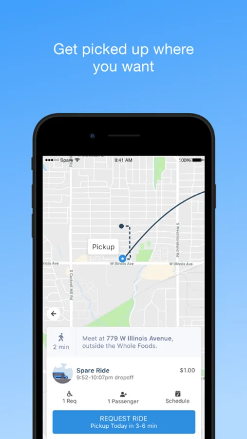 Spare is a transportation app that allows you to get fast, personal, on-demand rides from your transit agency. It's simple, just tab a button and request a ride from one of our transit agency partners. Spare is available in cities around the world - download the app and take your first trip today.