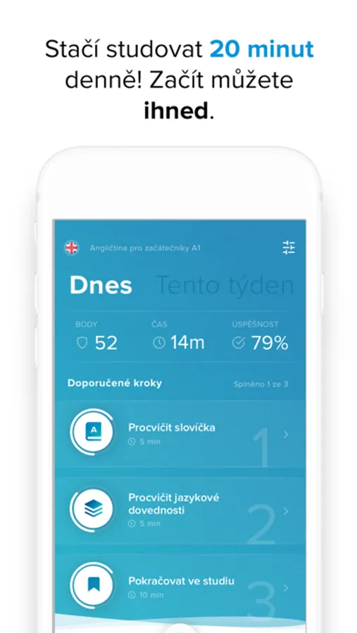 Vítejte v jediném výukovém systému na světě, ve kterém studujete cizí jazyky podle zlatého pravidla 30 na 20 - pouze 30 % nové látky a jen 20 minut výuky denně. Studujte vaši dvacetiminutovku 5x týdně a 2 dny odpočívejte.