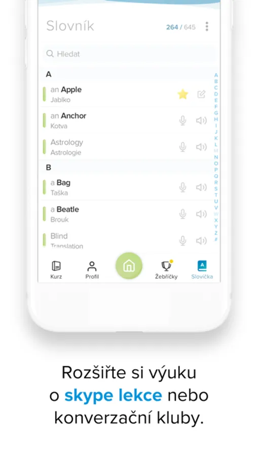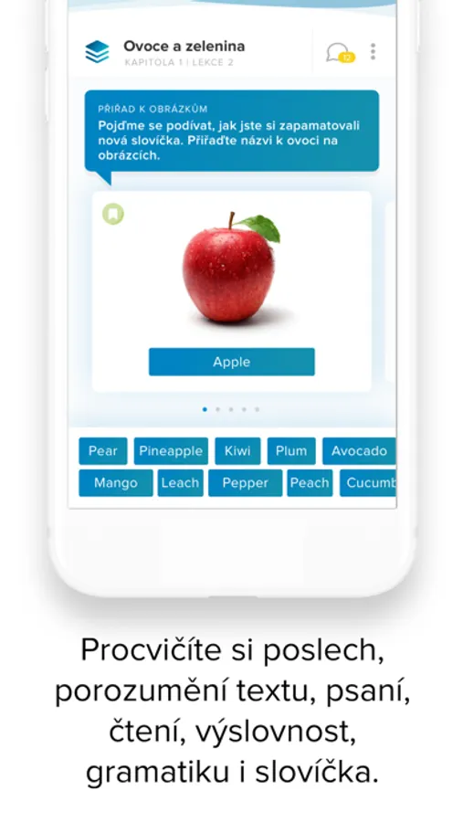 Procvičujete všechny jazykové dovednosti - poslech, porozumění, čtení, psaní, výslovnost, gramatiku i slovíčka.