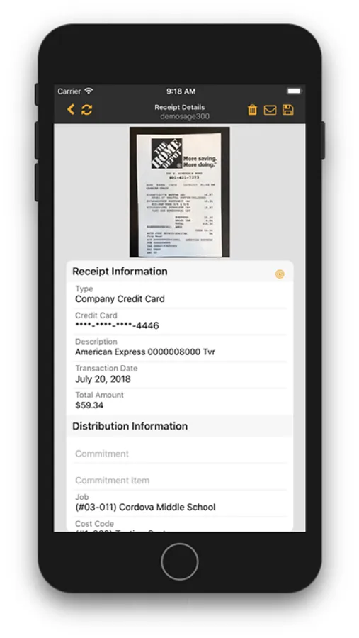 Easily code the receipt to a job, cost code, category, commitment, commitment item or account.