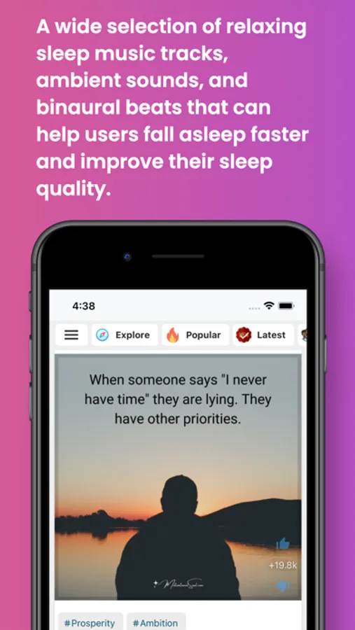 Our selection of relaxing sleep music tracks, ambient sounds, and binaural beats that can help users fall asleep faster and improve their sleep quality. It also feature guided meditation sessions to help users reduce stress and anxiety, improve focus, and cultivate mindfulness. In addition to sleep music and meditation, the app would also include a collection of motivational speech audios from inspiring speakers and thought leaders to help users start their day with positive energy and inspiration.