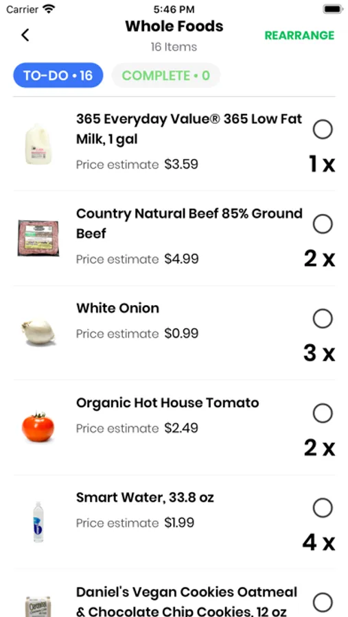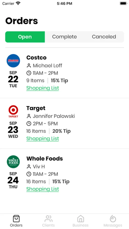 -View client's shopping list, re-order items on the list, and check off items as you go