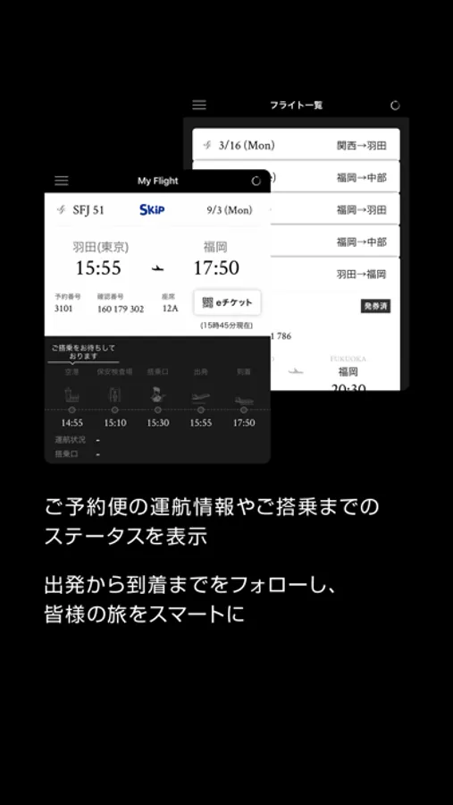 ・ご予約便の搭乗当日に運航情報や搭乗口などを表示
