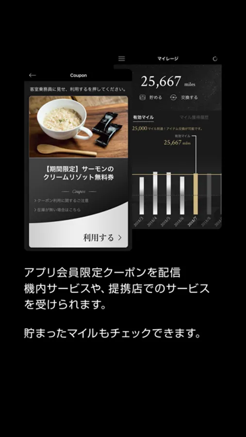 ・機内、空港、提携店舗等でサービスを受けていただけるクーポンを配信