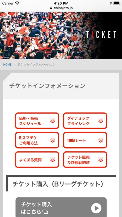 試合のスケジュールを確認して、試合日程からチケットの購入ができます。