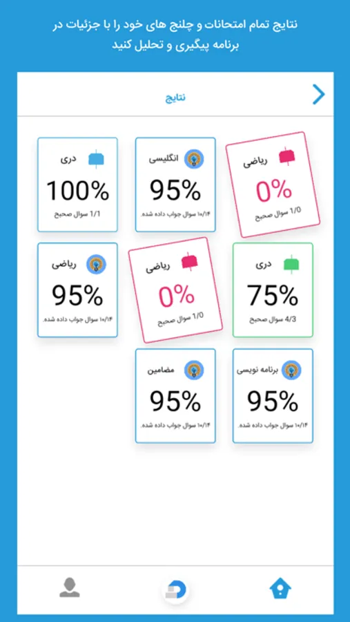 ۳. دیدن نتایج امتحانان و مرور سوالهای که درست و یا غلط جواب داده شده است.