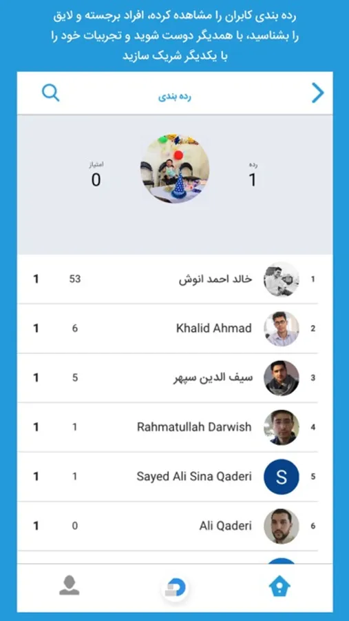۷. مشاهده رده بندی کاربران و استفاده کننده گان. در این قسمت میتوانید نمره ها و رده بندی افراد را دیده و در صورت علاقمندی با آنها دوست شده و آنها را دنبال کنید.