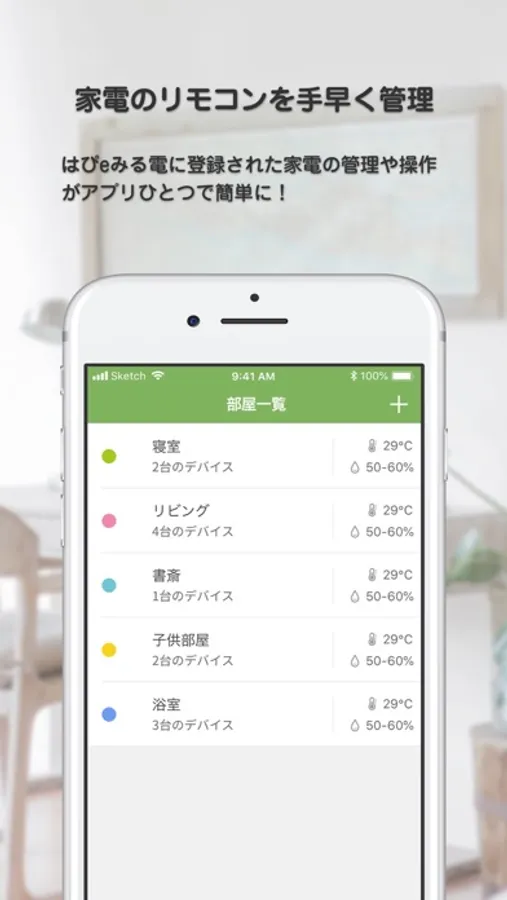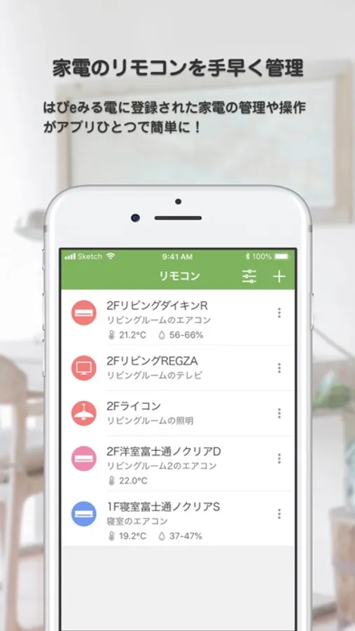 このアプリを使って「はぴeみる電」とスマートリモコン(NatureRemo)を連携していただくと、簡単にご家庭内の赤外線リモコンに対応した家電をまとめてコントロールできます。