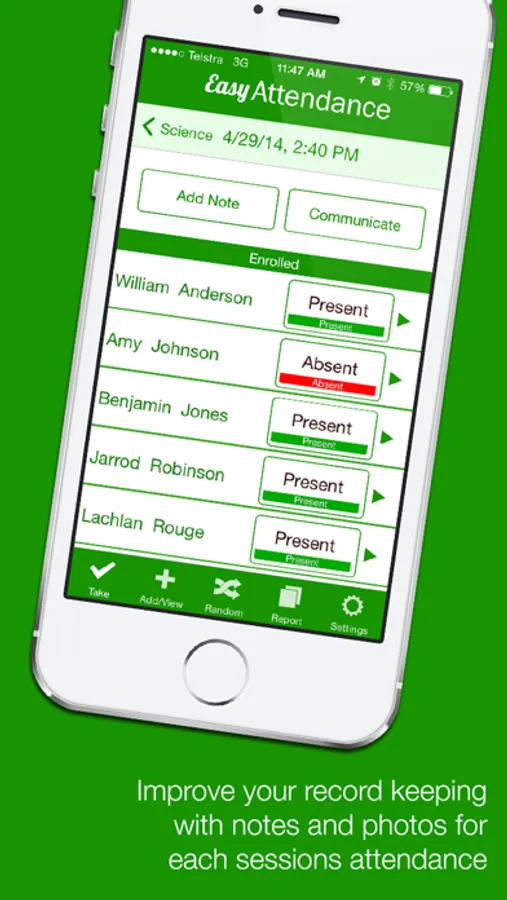 - Easily add observations and notes for each student - creating an excellent record of progress or points of interest.