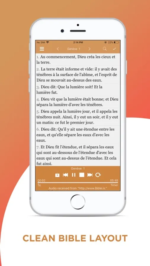 Louis segond Bible or la bible louis segond is a famous Bible in French. This version comes with audio. La bible en francais has daily Bible verses and nice interface for all good design lovers.