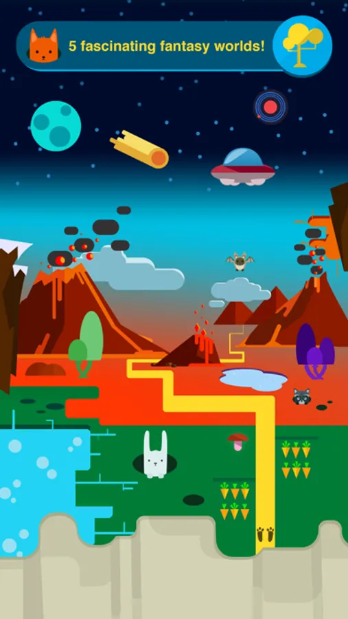 Travel through the underwater world with its bright fish, playful jellyfish, fast seahorses and giant whales. Walk across the colorful meadows of the green world or enjoy the fantastic scenery of the purple world. Admire the incredible sunsets and dawns in the red world or discover something new among the vastness of space.