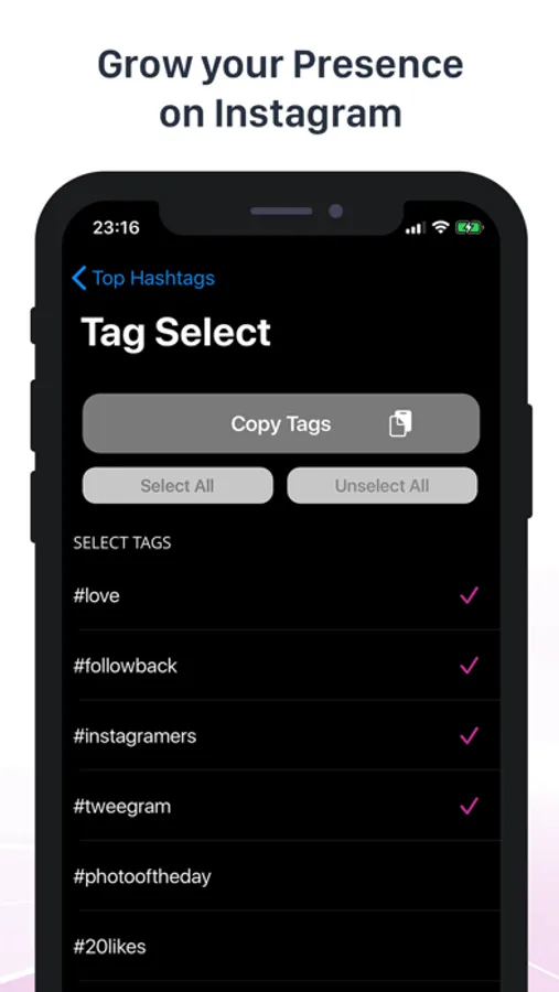 You can access ready-made sets of popular hashtags. Find plenty of the best Instagram hashtags for likes, and grow your presence on Instagram.