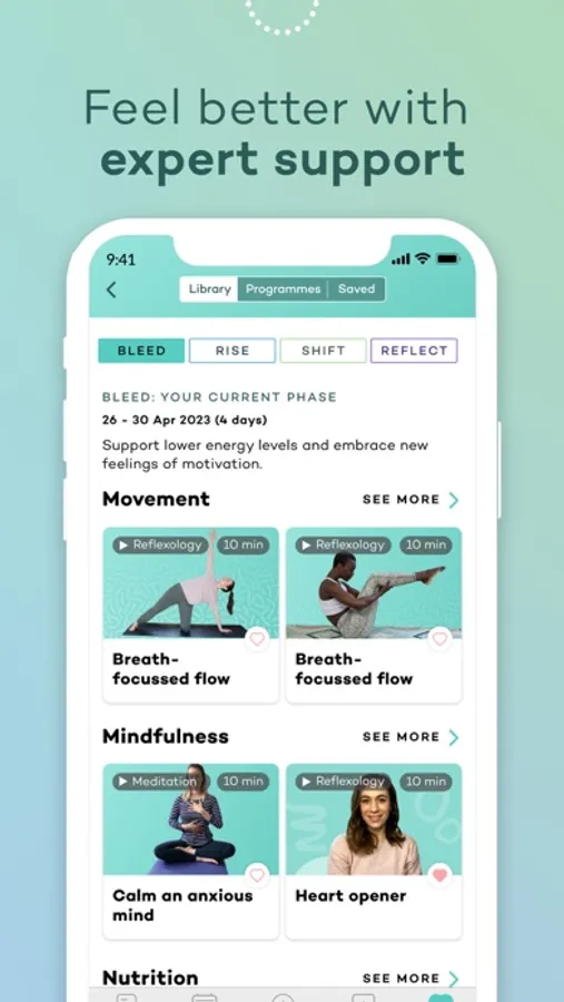 Support your daily wellbeing with fitness, mindfulness and nutrition content, tailored to your hormones. Get recommendations on the foods to eat, the workouts to do and the techniques to try to optimize your hormonal health. With our series of programs, you can access content aimed at supporting your most common moods and symptoms. Look forward to a combination of education, nutritional advice, recipes, movement and mindfulness practices focused on creating healthy routines and habits in relation to stress, fatigue, bloating and more.