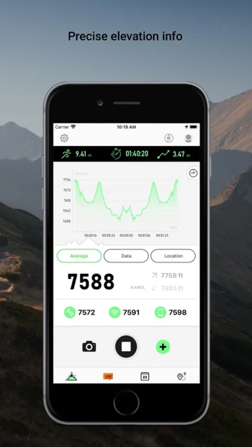 Turn your smartphone into a multi-function altimeter. Our unique algorithms determine your elevation using three sources - the GPS system in your phone, network services and, when available, your device’s barometer. Our algorithm combines data from all three sources to give you the most accurate reading possible.