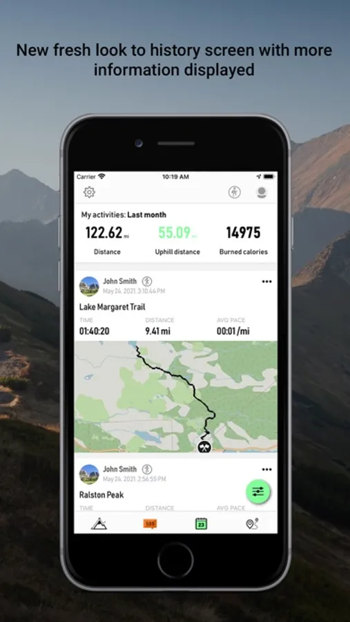 Our highly expanded history screen allows you to see all your data in one place, which includes map data with your route drawn over, trip data with elevation changes, pace, AVG. speed and more, four different charts with speed and elevation data and photos taken during a trip.