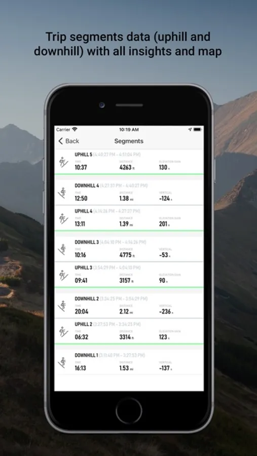 One of the coolest features of the app is that it divides your route into segments. In the segments screen, you can see separate uphill/downhill data, you can easily check how long it took you to climb a mountain, your recent pace and elevation gain or how fast you descended later on. You can go into the details of the segment on the map, where you can see a full chart with all data displayed on a list.