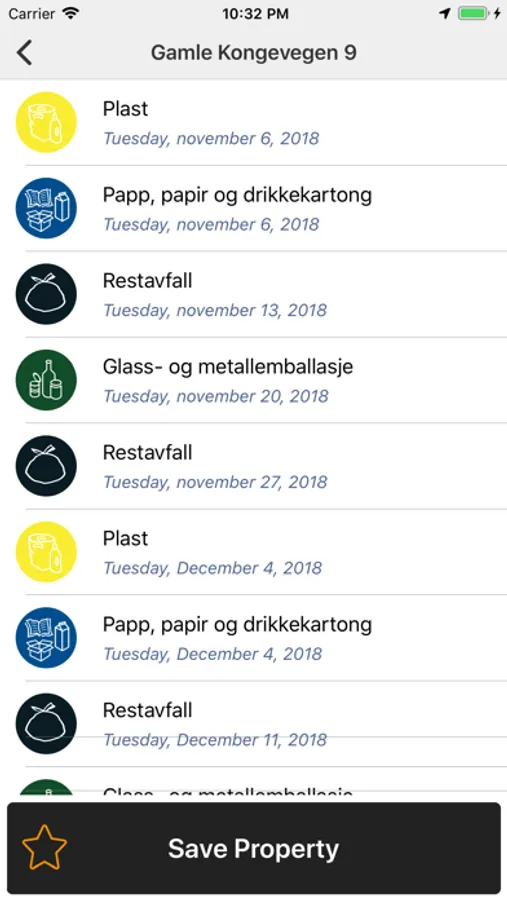 Dette er en applikasjon hvor abonnenter hos Hallingdal Renovasjon* får oversikt over tømmekalender for sin eiendom. Tømmeplanen viser tidspunkt for hvilke typer avfall som skal tømmes når for valgte eiendom. Varsling dagen før tømmedag blir automatisk satt, men kan endres i innstillingene. Det kan du endre tidspunkt for varsling og om du ønsker kun varsling for vises avfallstyper.