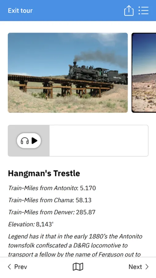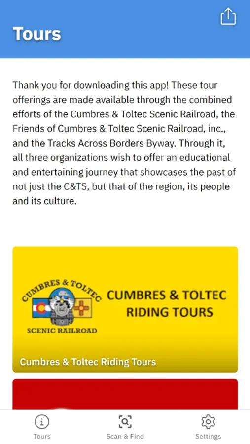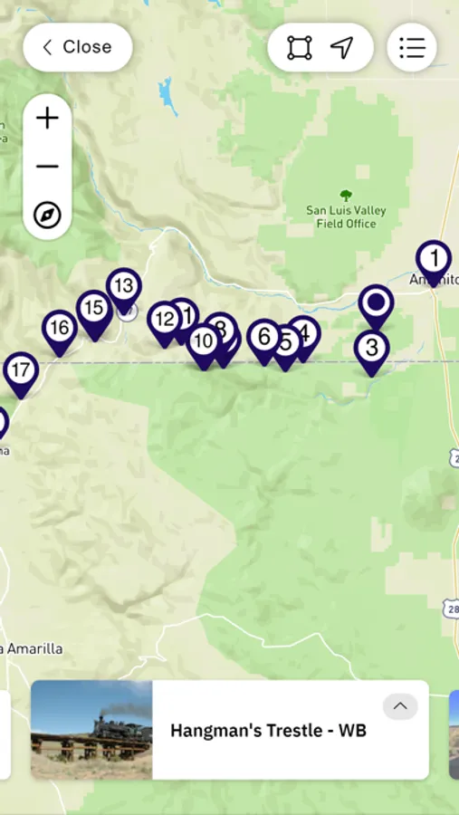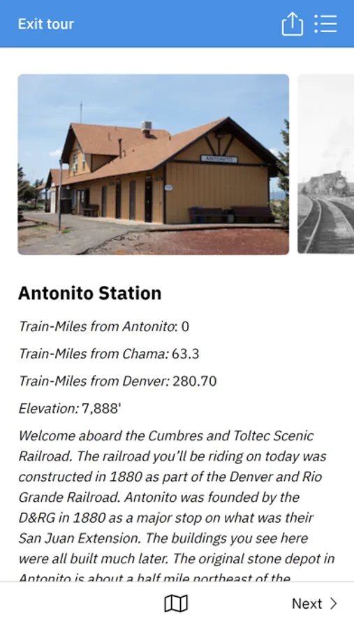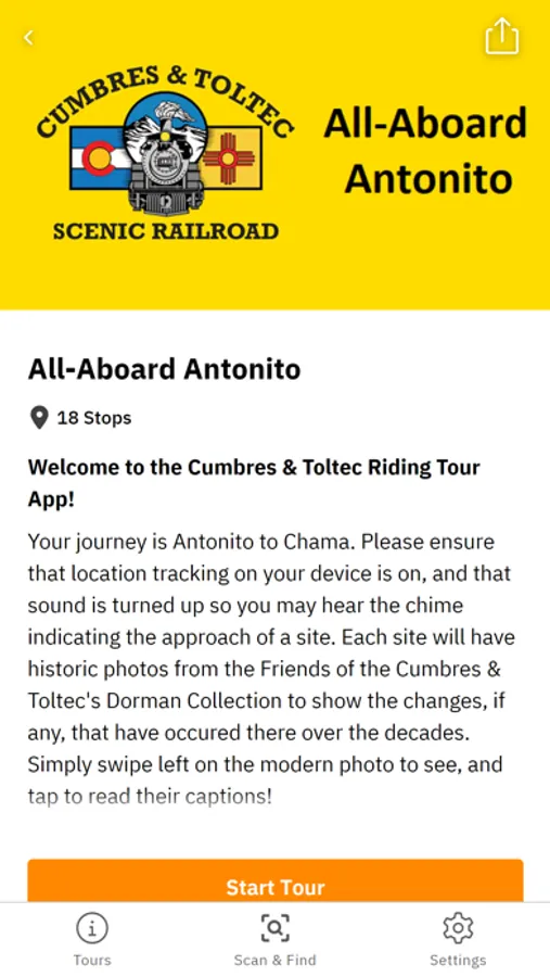 This native app will enhance the guest experience will riding the Cumbres & Toltec Scenic Railroad or navigating the Tracks Across Boarders Byway using GeoAlerts. The alerts will inform guests when they are near a point of interest and will give more detailed information about the site including, history, descriptions and photos.