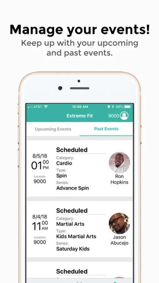 Easily check in right from your phone using your membership barcode and enroll in events or cancel them, whether it’s personal or team training, a spin class, Zumba or a body pump class.