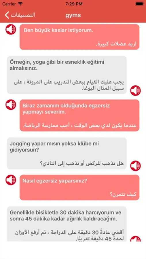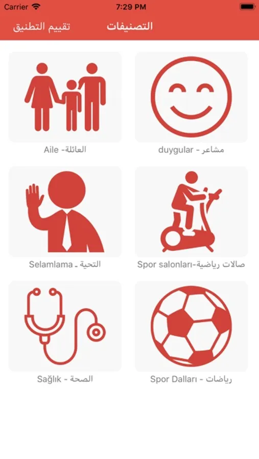 ـ يتكون تطبيق تعليم التركية من عدة تصنيفات لتعلم المحادثات