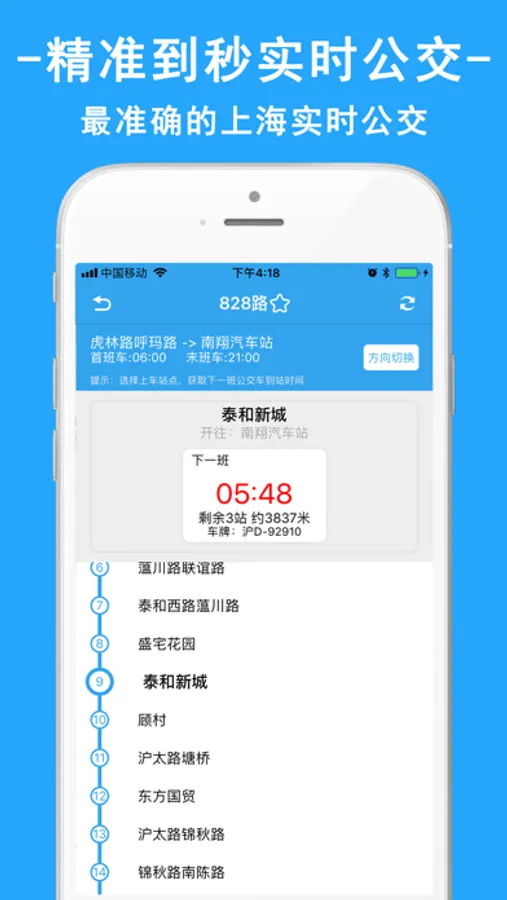 接入上海公交交通系统信息中心,实时更新公交定位数据,公交到站实时查询精确到秒,误差在10秒内,真正意义上的实时公交!