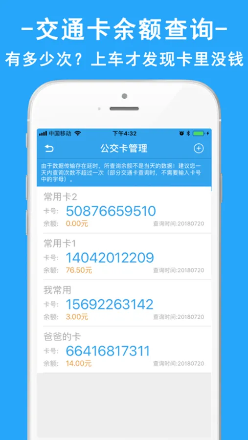 有交通卡的小伙伴们,可以通过这里时刻余额查询,出门前查一下,防止开内无余额,充值没带钱,方便快捷。