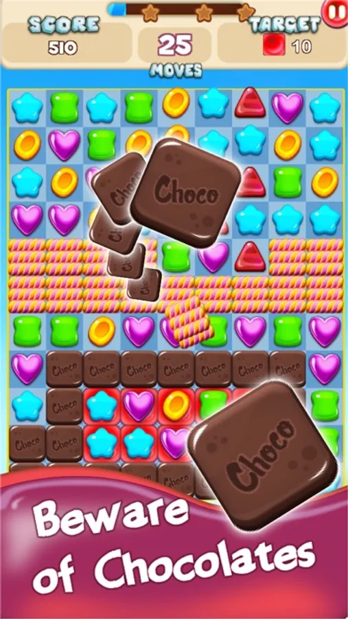 - Match 4 or more candies to create special candies - Use powerful props and special candies smartly to break Cookies, Chocolate, Ice etc.