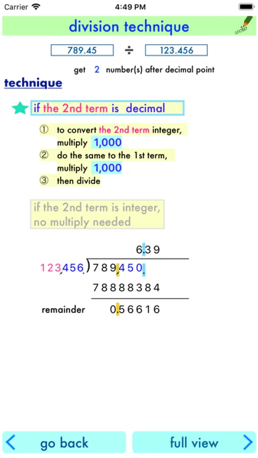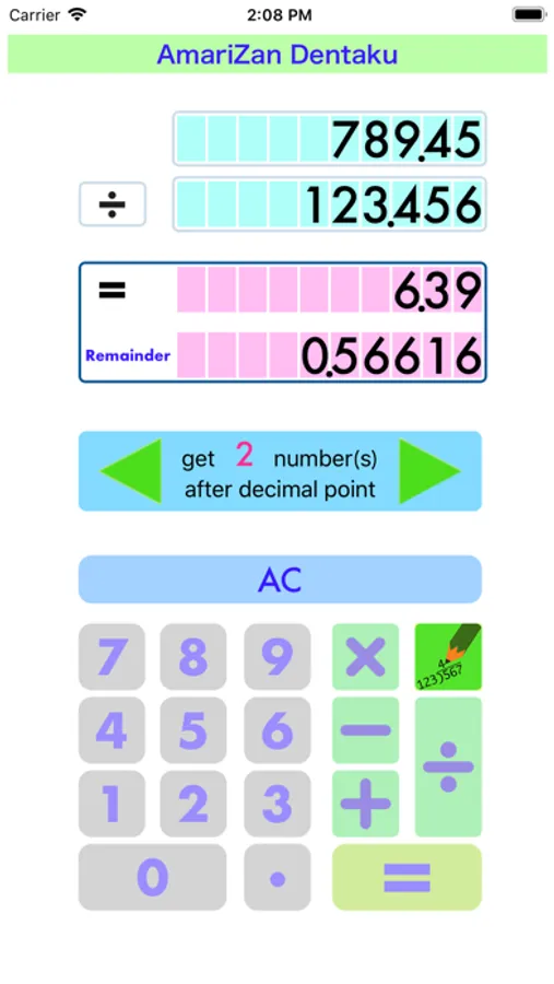 You can move decimal point maximum 9 digits in the quotient by pressing arrow buttons.