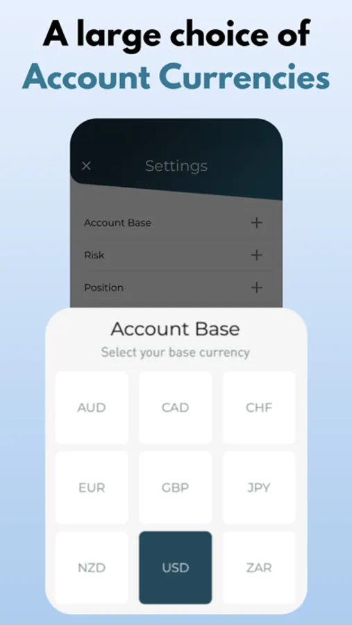 Calculate your risk in units or lots, choose to calculate your risk in % or $ (or any other major currencies).