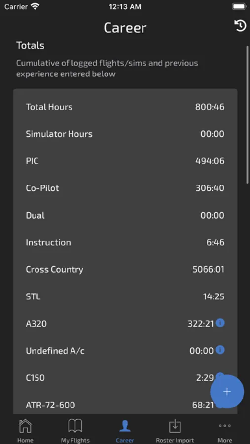 * Insights on hrs uploaded to egca with full break-up into categories like PIC, CO Pilot, SIC etc
