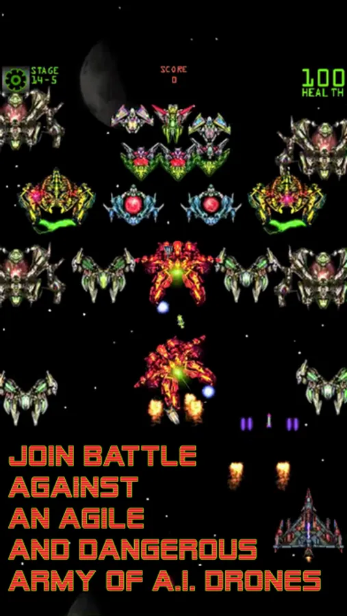 You will be equipped with a multitude of weapons, and the most powerful, fastest, and agile spaceship fighter ever build. You will need all these to face an endless array of drones, each of which has its own custom set of weapons, and attack pattern. As you make progress through the game, you will encounter more dangerous, quicker, and better equipped enemies. These will prepare you for the most extreme and exhilarating boss fights. This is not going to be and easy mission. Only the bravest have a chance. We are counting on you.