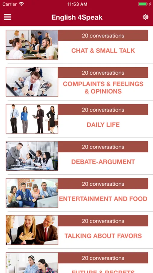 - Practice speaking English through a lot of topics English with simple English Conversations about: school, job, health, sports, shopping, ...